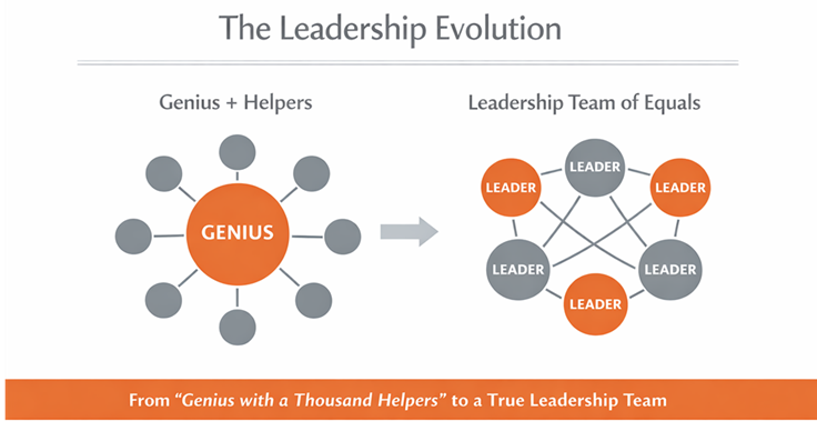 Is your business still operating around a “genius with a thousand helpers,” or are you building a true leadership team capable of carrying the vision forward together?